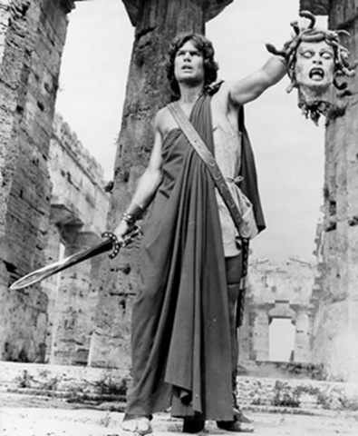 Perseo corta la cabeza de Medusa. Fotograma de la película "Furia de Titanes"