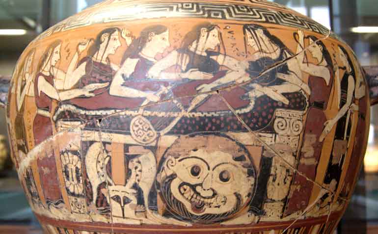 En el interior de la vasija Louvre G 152: escena de Briseida atendiendo a Fénix, paradigma acaso de la suerte de las cautivas.